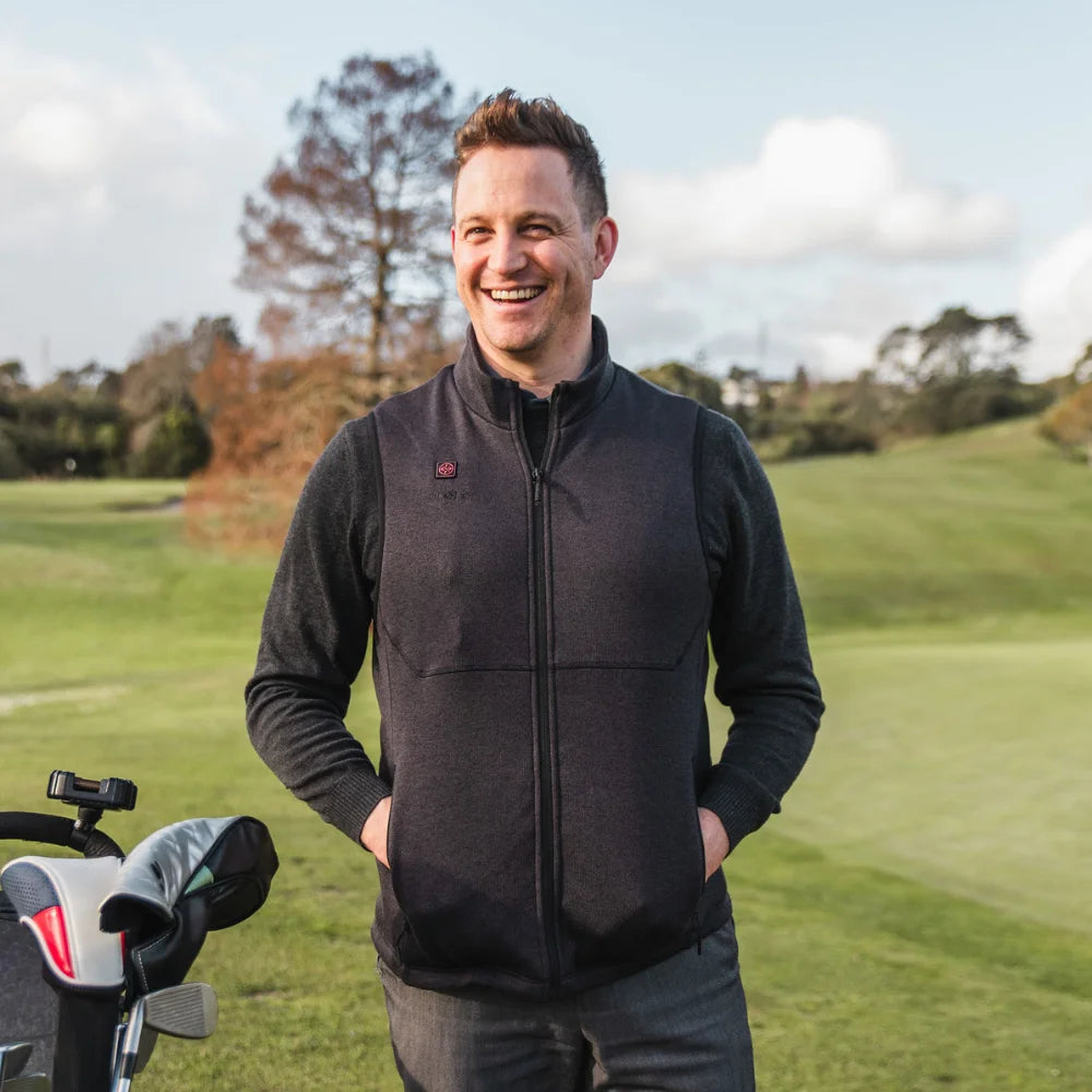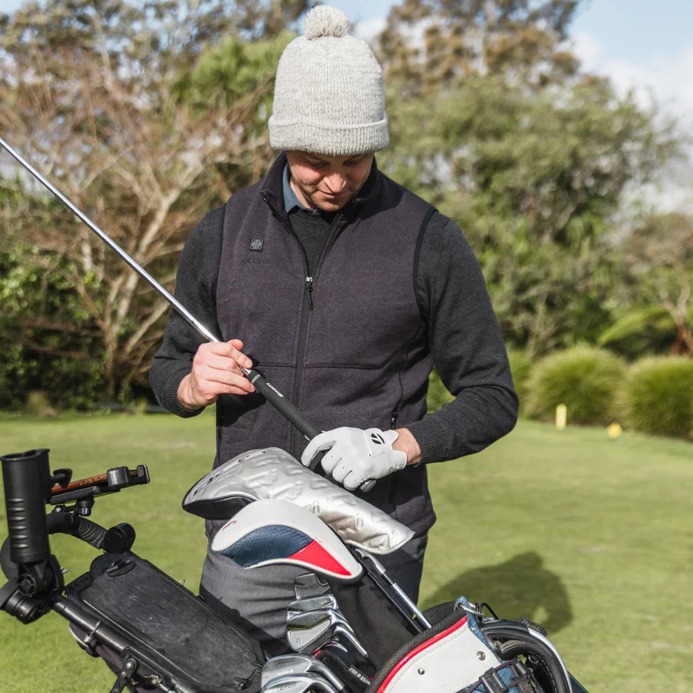 - 4 strategically placed heating zones warm the hands (core), back, and collar, keeping you toasty for the perfect swing.