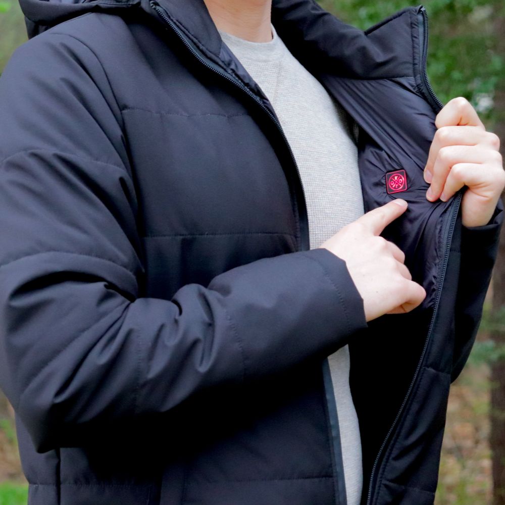- 3 carbon fiber heating elements (left & right pockets, upper-back)