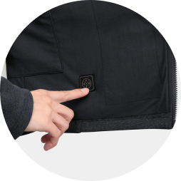 - Two zippered handwarmer pockets and one interior battery pocket.