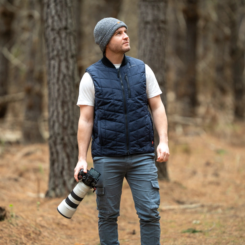 The Dual-Control System allows you to independently control the heating zones in the chest and back, as well as the hand pockets. With two power buttons discreetly located at the left hem, you can easily adjust the heat settings to target specific areas. This system not only enhances your comfort but also helps conserve battery life by allowing you to use only the heating zones you need most. This feature is perfect for tailoring your warmth and extending the vest's operating hours.