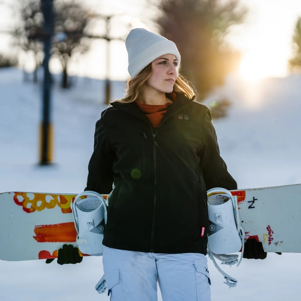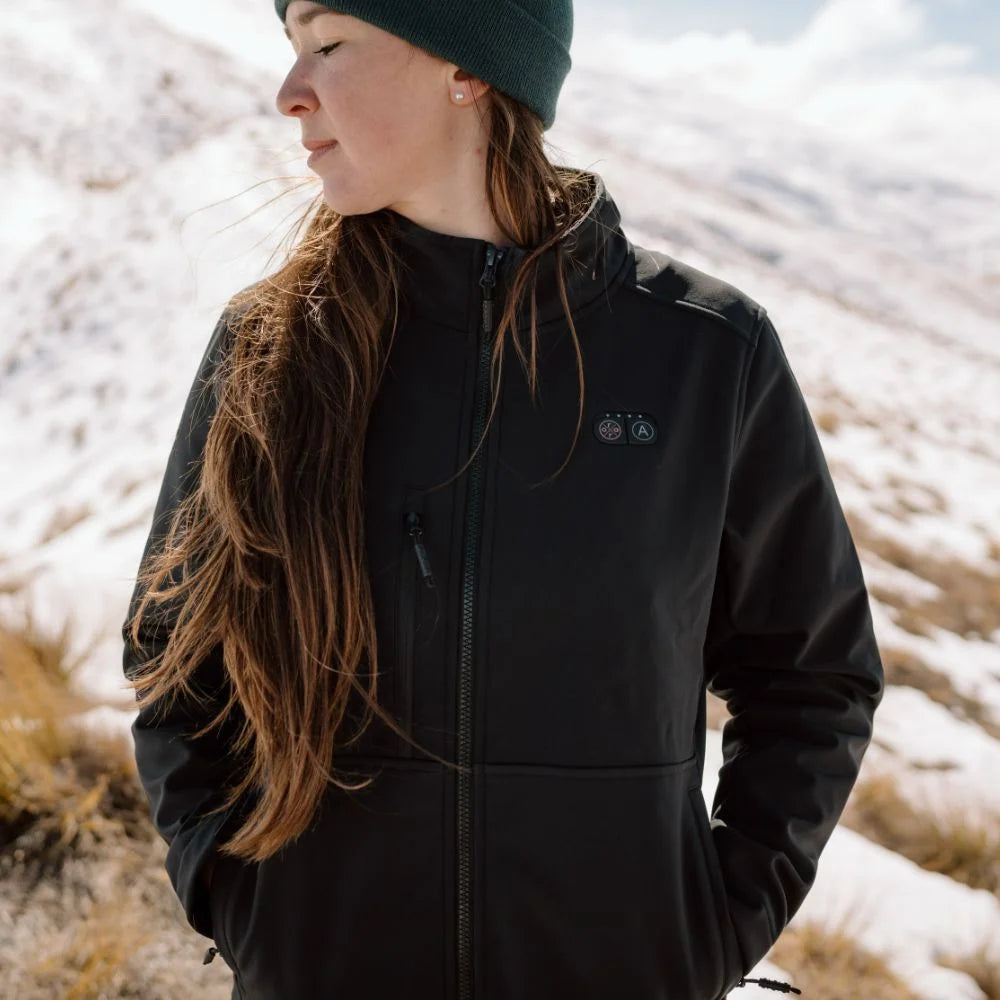 The jacket features dual-control power buttons located on the chest. You can independently adjust the heating level for different zones according to your preference. "Logo" Button: Controls the core body heating zones, which include the left & right pockets, neck, and mid-back. "A" Button: Controls the heating zones on the left & right arms.