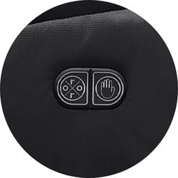 The vest features dual-control power buttons. These allow you to independently adjust the heating level for different zones according to your preference. "ororo LOGO" Button: Controls the upper body heating zones, which include left & right shoulder, neck, and mid-back. "hand" Button: Controls the hand pockets heating zones.