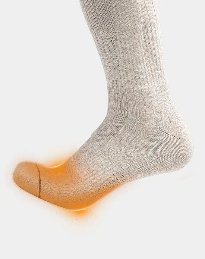 ororo has redefined heated sock design with our 3D Flex-Stitch Technology, ensuring warmth without sacrificing comfort. While many heated socks lose elasticity and feel stiff where the heating elements are sewn in, ororo's innovative stitching method integrates the heating elements seamlessly over the toes and soles of your feet. This maintains the sock’s natural stretch and drastically reduces the sensation of any wires or heating elements, making them feel like regular socks—only now, they’re heated for added warmth and comfort.