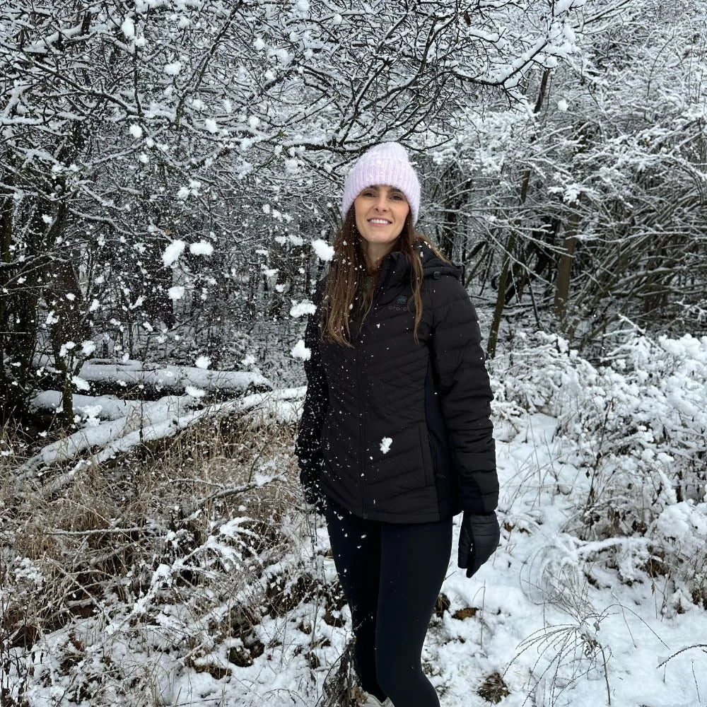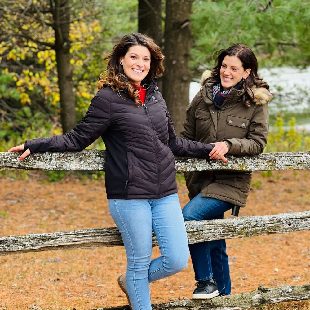 Women's Heated Down Jacket - Black/White